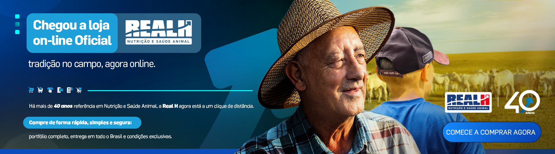 A loja virtual da REAL H Nutrição Animal é um ambiente digital moderno e funcional, pensado para atender com excelência produtores, criadores e profissionais do setor agropecuário. Com um layout limpo, navegação intuitiva e design responsivo, a loja oferece uma experiência de compra prática e segura, destacando seu portfólio completo de produtos voltados à saúde e nutrição animal.